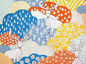 ファンシーなデザイン柄の間にひょっこり! こちらを見つめるシカがかわいい! *ご注意下さい。